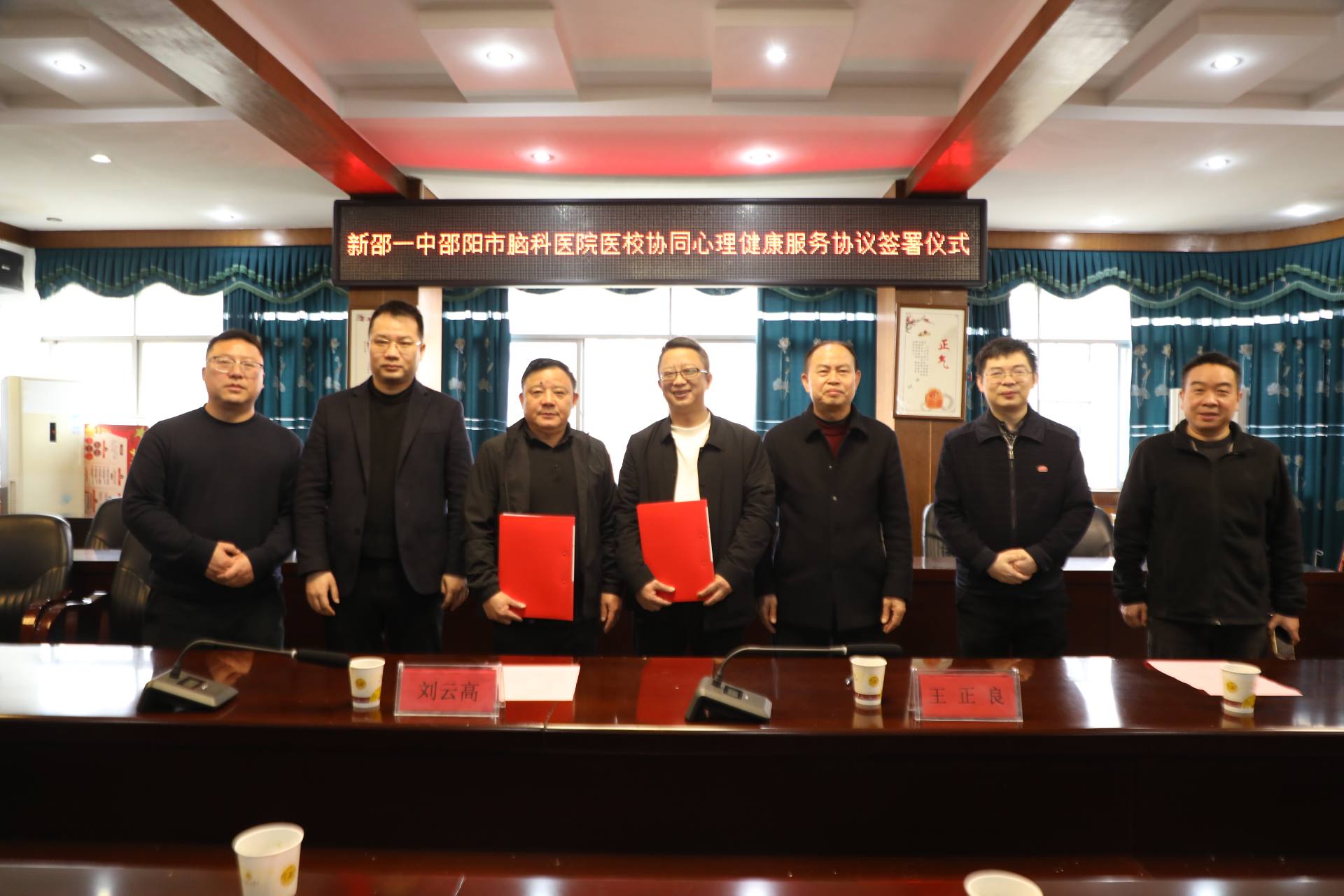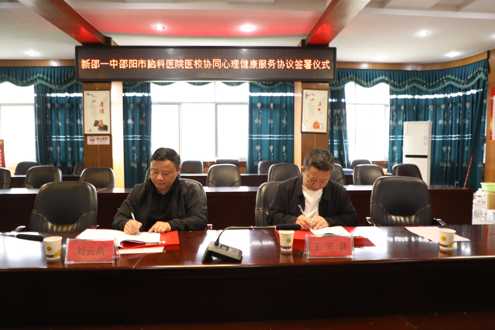 随后,新邵县第一中学党总支书记刘云高与邵阳市脑科医院院长王正良共同签署《校园心理健康促进联盟医教合作协议》,双方明确,将建立定期会商、专人对接、信息互通的长效机制,细化各项合作举措,确保合作落地见效。